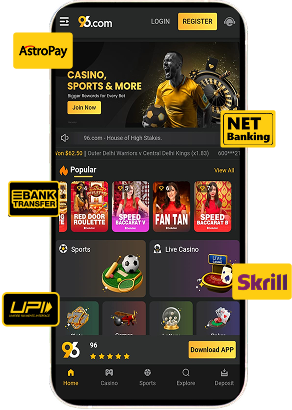 At 96 affiliates, we offer 24/7 deposit methods for our customers, including local payment options like UPI, one of India’s most popular payment methods. Here are the deposit methods available on our website: