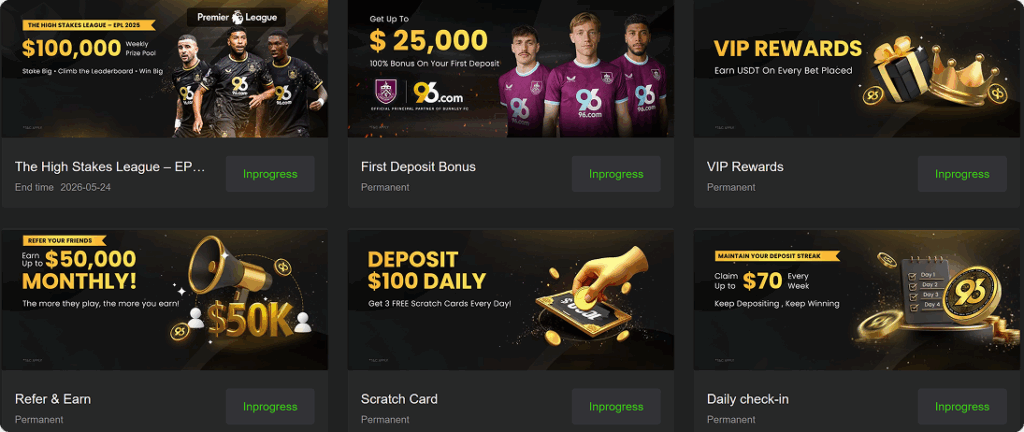 One of the benefits of our all-in-one platform is the ease of switching between 96 casino games and 96 sports betting. If luck isn’t on your side at the casino, you can easily switch over to 96 sports betting and try your luck there. Or, if you’re waiting for a game to start, you can pass the time by playing your favorite slots or table games We also offer a range of promotions and bonuses to enhance your gaming experience. Our platform provides various bonuses and promotions for both 96 casino games and 96 sports betting, giving you even more opportunities to win big.